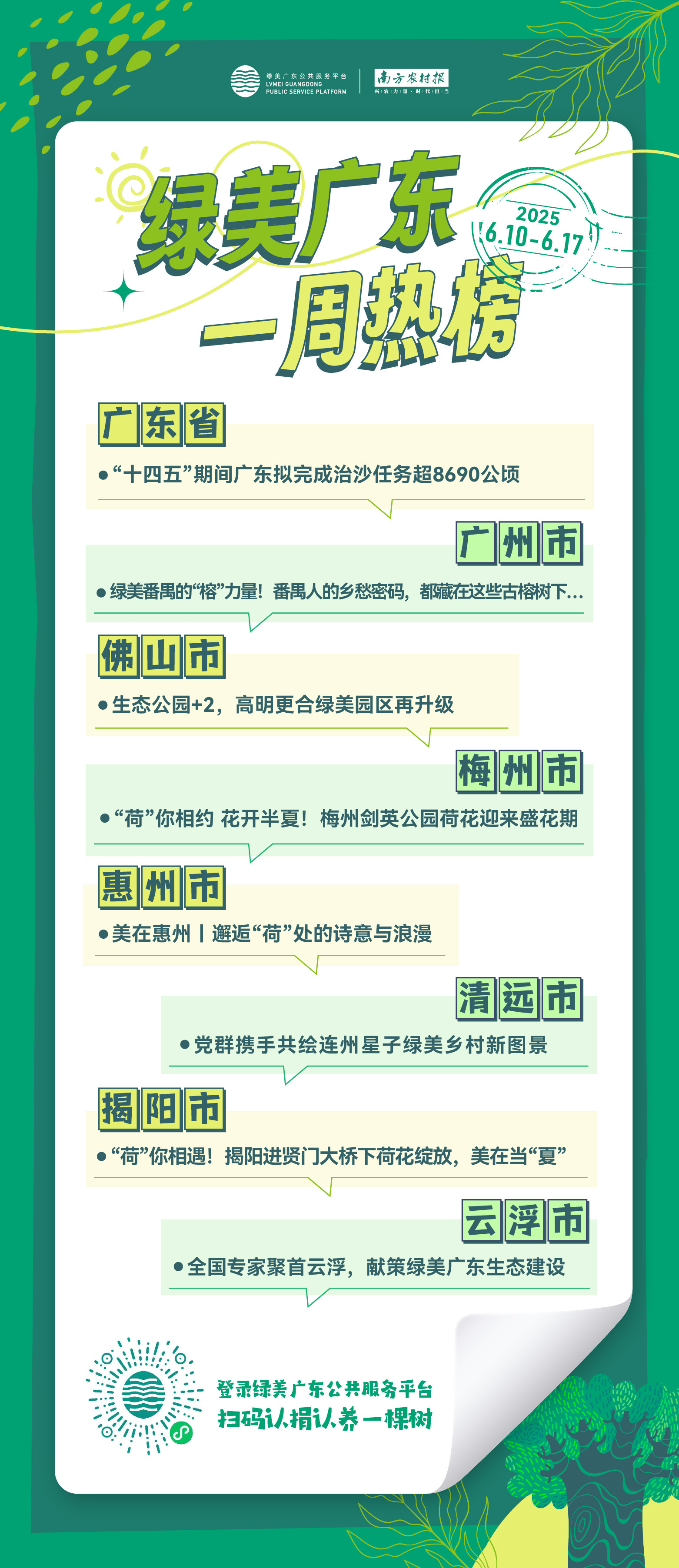 在连州市星子镇的洋洞坪村,一株株新栽种的红花玉兰枝叶翠绿,生机盎然。树上,还挂着一块“党员植绿护绿卡”,标明了责任人的名字。这是该镇通过建立“党建+网格”绿化管护机制,将绿化责任细化至每个网格、落实到个人的缩影,确保乡村绿化“种一片、活一片、美一片”。详情>>>